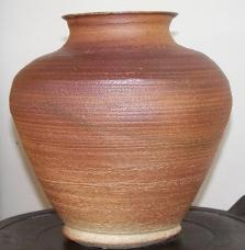 This is a soda fired vase. The vase is 9 inches tall and 8 inches in diameter.